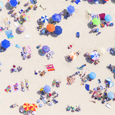 He looks for mesmerizing geometric patterns that umbrellas and beach chairs create from above.