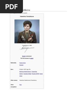 Valentina tereshkova a russian cosmonaut created history when she became the first woman to travel to space. From wikipedia, the free encyclopedia. 5'5''(in feet & inches) 1.651(m) 165.1(cm) , birthdate(birthday): She became interested in parachuting from a young age and trained in skydiving at the local aeroclub. Valentina teresjkova quicki valentina vladimirovna teresjkova, född i bolsjoje maslennikovo, jaroslavl.
